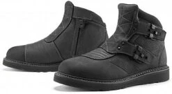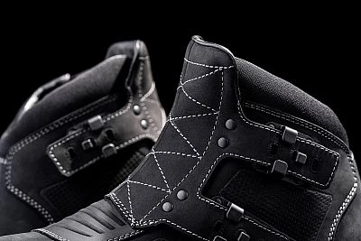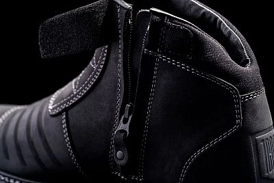 Die stoĂfesten NylonverschlĂŒsse, das Chassis aus schwerem Top-Grain-Leder, die internen D3OÂź KnöcheleinsĂ€tze und die robuste Zehenbox und Ferse machen ihn zu einem ernstzunehmenden Motorradschuh.
