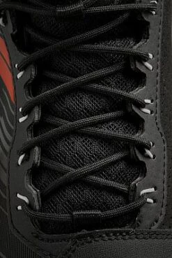 Zu den Sicherheitskomponenten zĂ€hlen ein robustes ĂuĂeres aus Leder, eine eingespritzte Knöchelschale und thermogeformte Fersenschalen und Zehenkappen. Was die BelĂŒftung betrifft, so befinden sich an der Innenseite und auf der Zunge Perforationen, die die FĂŒĂe abkĂŒhlen.
