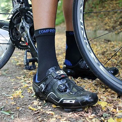 Verstärkte Zehen und Fersen für den aktiven Einsatz beim Sport, Radfahren, Laufen oder anderen. Mit seinem speziellen Gewebe mit variabler Dichte komprimiert es die Muskelfasern genau an den richtigen Stellen, um die Durchblutung und damit die Sauerstoffversorgung des Gewebes zu unterstützen.