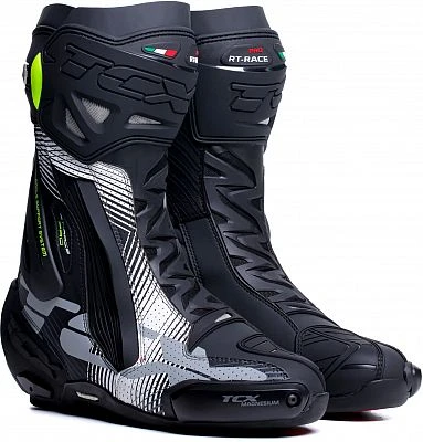 Der Motorradstiefel RT-Race Pro Air ist das Flaggschiff der Racing-Linie und aus der Zusammenarbeit zwischen der TCX-Forschungs- und Entwicklungsabteilung und den Fahrern der MotoGPâą entstanden.