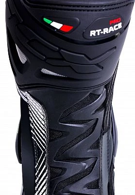 Der RT-Race Pro Air beinhaltet Fasten Fit Control, ein in das Stiefelfutter integriertes Schnell-SchnĂŒrsystem, das dafĂŒr sorgt, dass das Obermaterial den FuĂ perfekt umschlieĂt und eine millimetergenaue Anpassung der Passform ermöglicht. Das Verschlusssystem des Stiefels verfĂŒgt ĂŒber einen Aluminiumhebel mit mikrometrischer Verstellung und Schnellverschluss, der den Schaft perfekt an die unterschiedliche Anatomie der Wade anpasst, und einen seitlichen ReiĂverschluss mit Stretch-Panel.