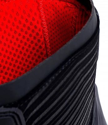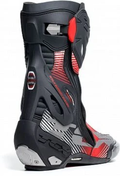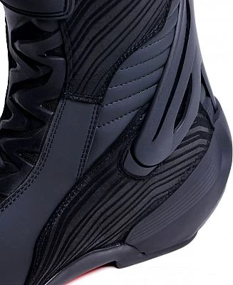 Das D.F.C.-System verfĂŒgt ĂŒber einen PU-Rahmen, der mit zwei seitlichen, verdeckten Schrauben am Fersenschutz auf Höhe des Knöchels am Stiefel befestigt ist. Im hinteren Teil des Schuhs ist das System mit zwei Laschen ausgestattet, die in spezielle Sicherheitstaschen gleiten, die eine FlexibilitĂ€t des RĂŒckens von bis zu 13 Grad ermöglichen und eine Ăberdehnung des Knöchelgelenks verhindern, um das Verletzungsrisiko zu begrenzen. Der PU-Rahmen des Systems ist dĂŒnn und um den Stiefel herum geformt, um eine flache InnenflĂ€che zu bieten, die einen guten Halt auf dem Motorrad ermöglicht und verhindert, dass man wĂ€hrend der Fahrt auf dem Motorrad hĂ€ngen bleibt. Das D.F.C.-System ist so konstruiert, dass es auch bei einem Aufprall einen ĂŒberragenden Schutz bietet; der Fersenschutz ist so konstruiert, dass er Aufprallenergie und Kompression absorbiert, und er ist mit einem hinteren und seitlichen Schieber ausgestattet, um das natĂŒrliche Gleiten im Falle eines Sturzes zu erleichtern.