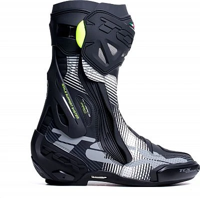 Die Motorradstiefel TCX RT-Race Pro Air sind mit dem Double Flex Control Antitorsionssystem ausgestattet, einem Gelenk aus Polyurethan, das im Knöchelbereich positioniert ist, die Bewegung millimetergenau steuern kann und Halt sowie optimale FlexibilitÀt des Gelenks bietet, um gefÀhrliche Verdrehungen und mögliche Verletzungen zu vermeiden.