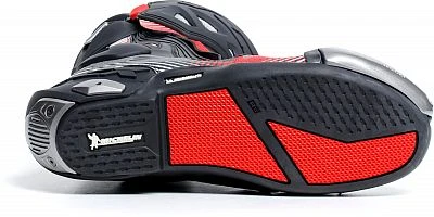 Die von TCX in Zusammenarbeit mit dem MichelinÂź Forschungszentrum hergestellte âBurnoutâ-Sohle ist vom MichelinÂź-Reifen âPower Supersport Evoâ inspiriert und verfĂŒgt ĂŒber ein Dual-Compound-Profil mit differenzierten Gripzonen, die eine höhere Haftung an den FuĂrasten und auf den Bedienelementen sowie eine höhere VerschleiĂ- und Abriebfestigkeit gegenĂŒber Asphalt gewĂ€hrleisten sollen. Das Profil ist vollstĂ€ndig in das Obermaterial integriert und die Ferse weist eine Neigung des Winkels auf, sodass eine optimale Auflage auf den FuĂrasten garantiert ist.