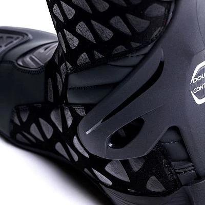 Das Double Flex Control System verfĂŒgt ĂŒber ein PU-Gelenk im Knöchelbereich, um die FlexibilitĂ€t des Beines nach vorne und hinten zu verbessern. Das System ist mit zwei seitlichen verdeckten Schrauben auf Malleolus Ebene an den Stiefel angebracht. Diese spezielle Konstruktion ermöglicht eine Biegsamkeit nach vorne von bis zu 18° und eine Biegsamkeit von bis zu 15° nach hinten ermöglicht, so dass eine Ăberdehnung des Sprunggelenks vermieden wird und um den FuĂ des Fahrers vor Verletzungen zu schĂŒtzen.